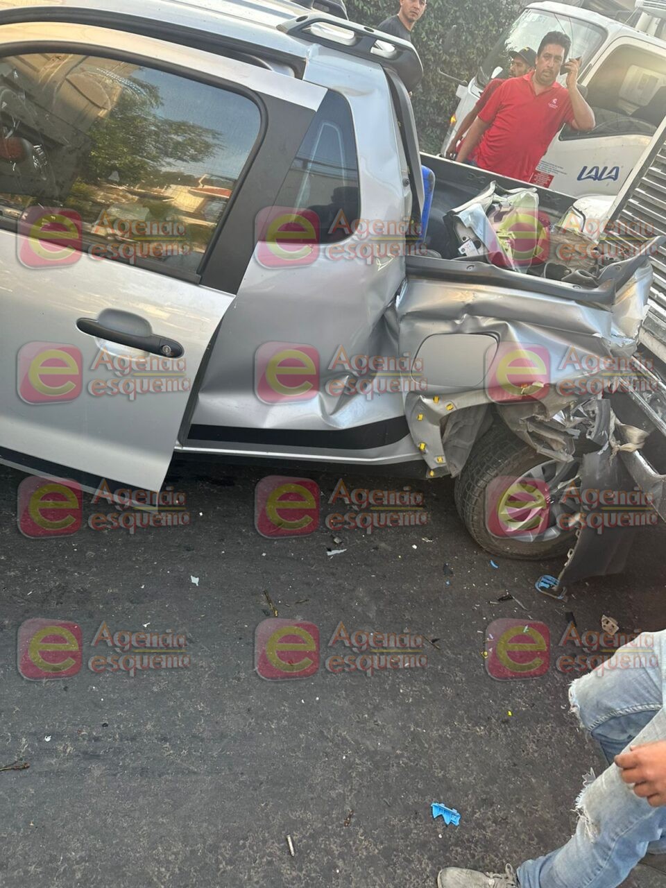 Alrededor de las 18:00 horas, el camión torton de color blanco circulaba de poniente a oriente cuando aparentemente de quedó sin frenos, chocó por alcance contra una camioneta de color gris y la prensó contra otro camión de carga, esto a unos metros de la calle Revolución.