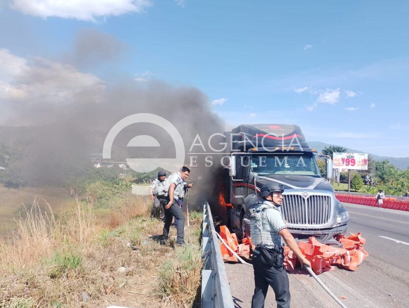 Ziracuaretiro, Michoacán, 28 de enero de 2026.– Un tráiler estuvo a punto de incendiarse tras una falla en el sistema de frenos la tarde de este miércoles, sobre la autopista Siglo XXI, en el tramo Uruapan-Pátzcuaro.