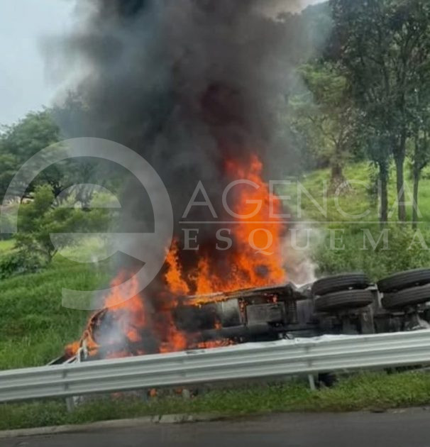 Ziracuaretiro, Michoacán, 24 de julio de 2025.- Un tráiler volcó y se incendió sobre la autopista Siglo XXI, en el tramo Uruapan-Pátzcuaro, accidente que dejó lesionado al conductor y el cierre parcial de la vialidad.