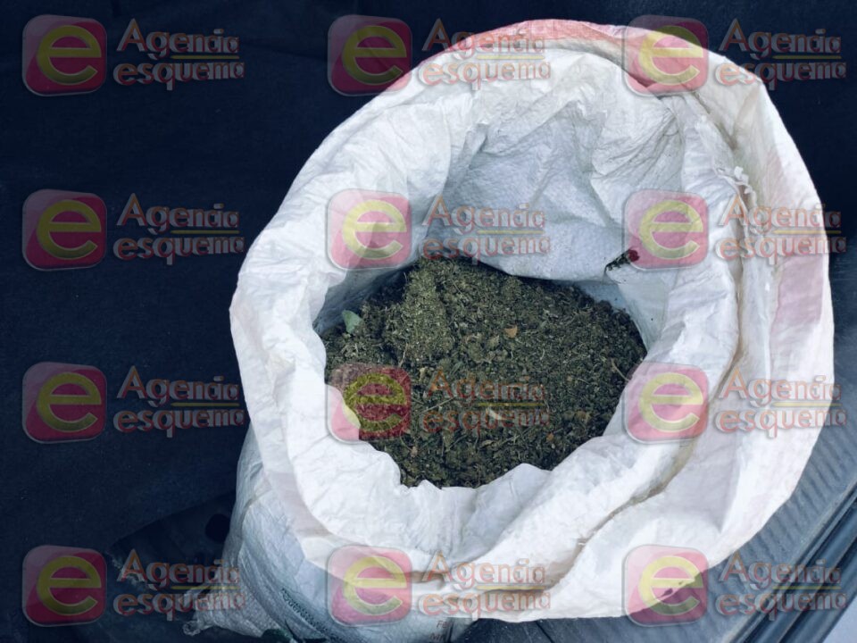 Susupuato, Michoacán, 05 de marzo del 2024.-Dos sujetos que presuntamente transportaban un costal con casi tres kilos de mariguana, fueron detenidos por efectivos de la Base de Operaciones Interinstitucionales a bordo de un vehículo.