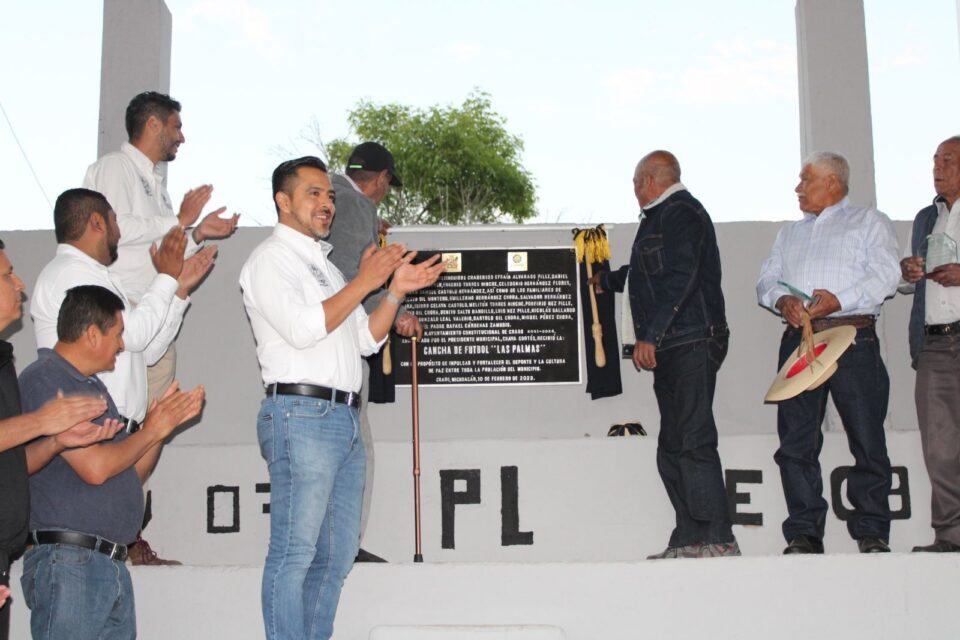 Por su parte, Chava Cortes les agradeció su disposición para donar el campo “hoy en día pocas personas comparten su patrimonio para beneficio de todo un pueblo; ellos en lugar de vender este terreno con fines comerciales o económicos, lo donan para que las presentes y futuras generaciones practiquen el futbol, el deporte y eso es digno de reconocerles”.