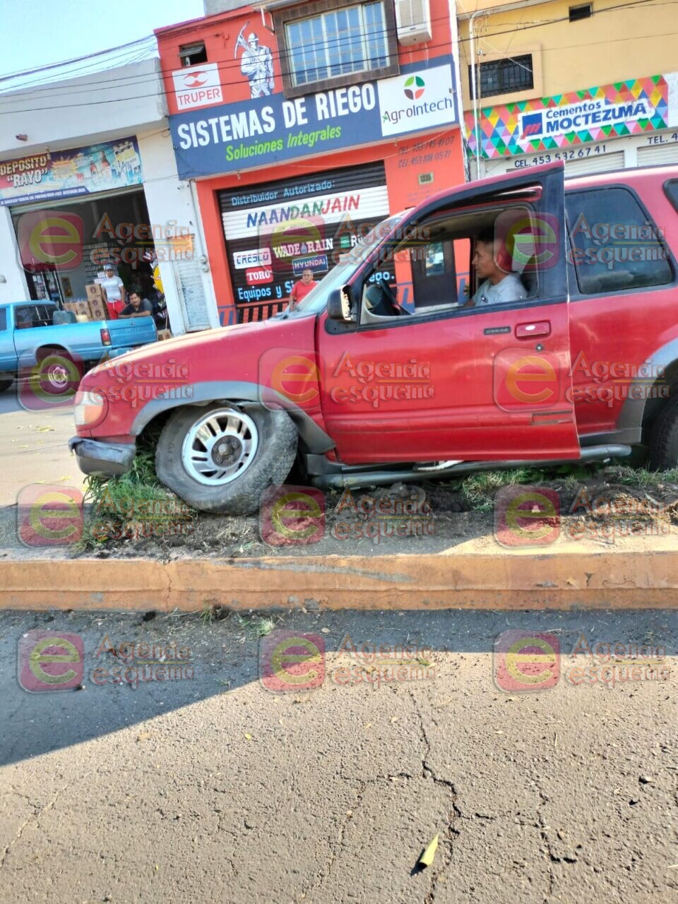 Apatzingán, Michoacán, 11 de junio de 2023.-Un automovilista terminó trepado en el camellón central de la Avenida Francisco I. Madero debido a una falla mecánica, en su vehículo.