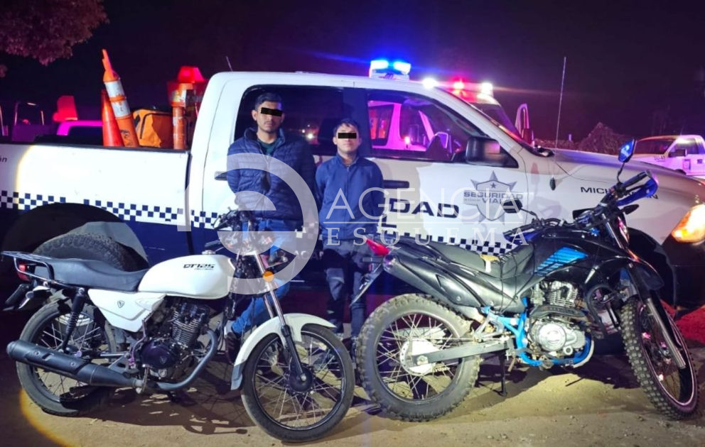 Uruapan, Michoacán, 04 de noviembre de 2025.- Dos presuntos responsables de incendiar una a grúa en la estación del Teleférico ubicada a un costado de la Presidencia Municipal fueron detenidos por elementos de la Guardia Civil, quienes les aseguraron dos motocicletas.