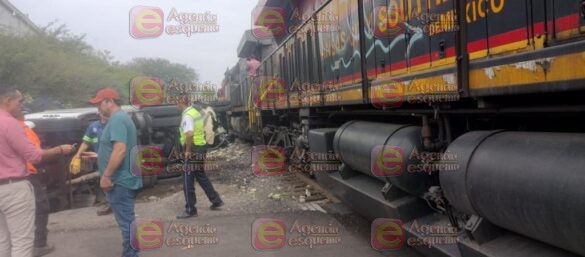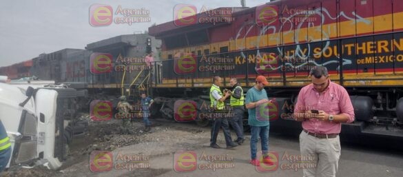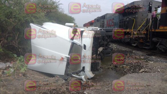 Este incidente movilizó a los servicios de emergencia esta mañana en el camino a la colonia La Aldea, ahí el tráiler quedo volcado al lado de la maquina que jalaba decenas de vagones.