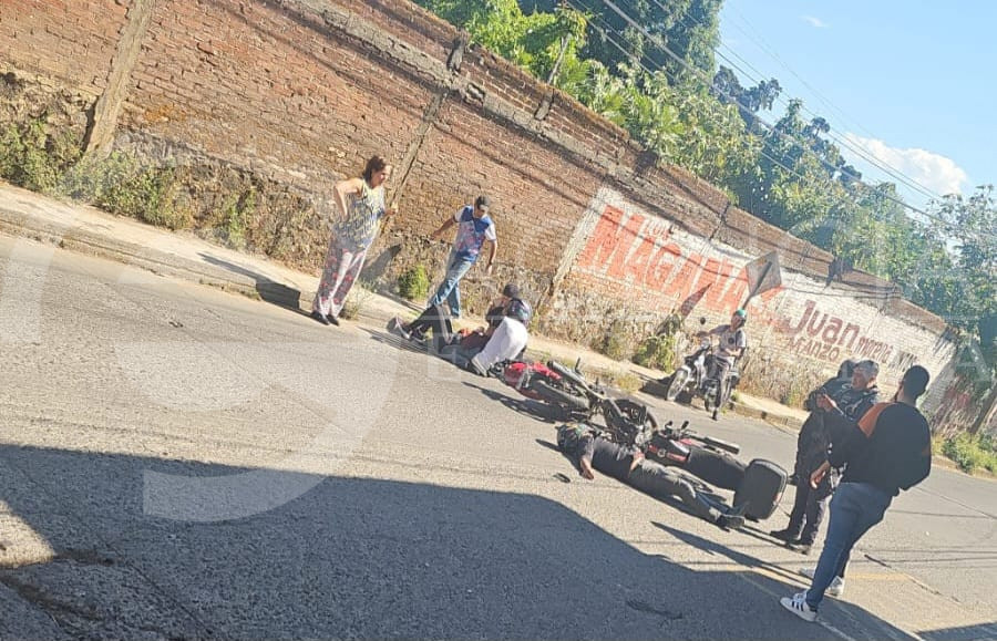 Uruapan, Michoacán, 03 de febrero de 2025.- Al parecer debido al exceso de velocidad, dos motocicletas se impactaron con saldo de tres personas lesionadas, dos hombres y una mujer, accidente regiatrado el Barrio de San Pedro.