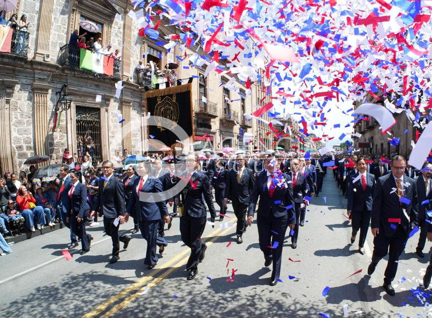 A su paso, el contingente universitario provocó los aplausos del público, especialmente cuando se entonaba el tradicional ¡Pís, pás!, demostrando la fuerza y el espíritu inquebrantable que caracteriza a la institución y recordando el legado el Generalísimo don José María Morelos y Pavón.