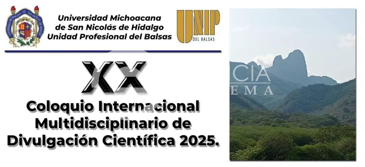 Morelia, Michoacán, a 05 de noviembre de 2025.- Refrendando su compromiso con la formación integral, la investigación científica y la vinculación social, la Universidad Michoacana de San Nicolás de Hidalgo (UMSNH) a través de la Secretaría Académica y la Unidad Profesional del Balsas, convoca al XX Coloquio Internacional Multidisciplinario de Divulgación Científica, un espacio propicio para la divulgación del conocimiento científico y el intercambio de resultados de investigación, que se llevará a cabo de manera presencial del 24 al 27 de noviembre en las instalaciones de dicho plantel, ubicado en el municipio de Huetamo.