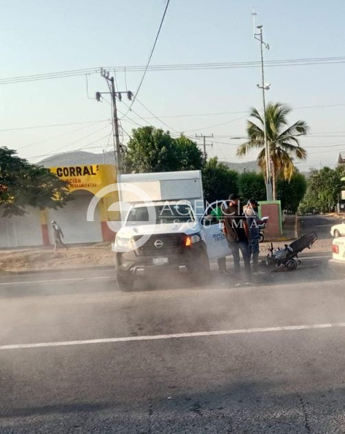 Paramédicos de protección civil municipal, se trasladaron al lugar para auxiliar a Marcos M.C de 51 años de edad , habitante de la colonia Lázaro Cárdenas, el cual viajaba en una motocicleta marca Italika,color negro y amarillo, quien trae el choque estaba debajo de la camioneta marca Nissan,color blanca, tipo carga, después de varios minutos lograron estabilizar al herido, para trasladarlo a un hospital de la ciudad, quedando en la sala de curaciones bajo observación médica, dónde hasta el momento se reporta grave.