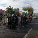 La unidad marca Mazda color negro, se desplazaba de oriente a poniente, y al pasar la entrada al estadio de futbol, su conductor perdio el control del volante, brinco el camellón central y dió varias volteretas sobre los carriles centrales en sentido contrario.