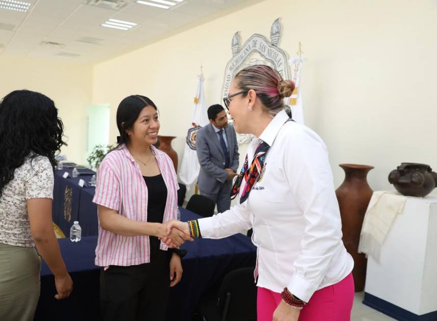 La rectora nicolaita entrega equipo de cómputo, impresoras y botiquines a integrantes de las Casas del Estudiante.