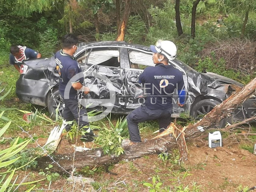 Chilpancingo, Guerrero, 23 de septiembre de 2025..- Personal operativo de la Secretaría de Gestión Integral de Riesgos y Protección Civil, este martes atendieron el reporte de volcadura de un vehículo particular sobre la carretera Amojileca-Xocomanatlán, con el saldo de cinco personas lesionadas.