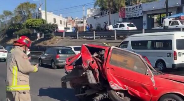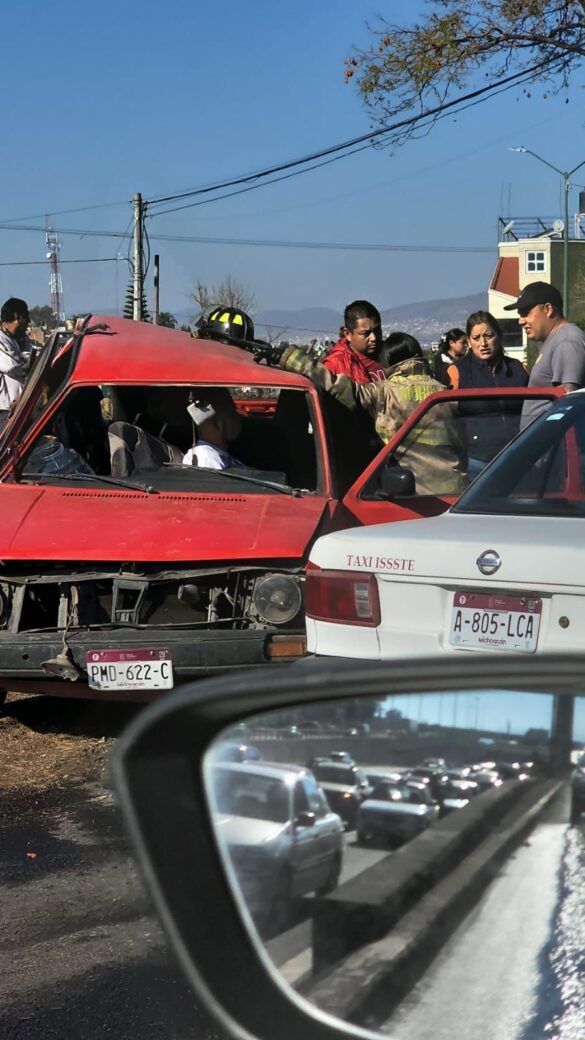Antes de las 10:00 horas el vehículo de lujo color verde circulaba de Oriente a poniente y al salir del túnel de la salida a Charo, se impactó por alcance contra la Caribe color rojo.
