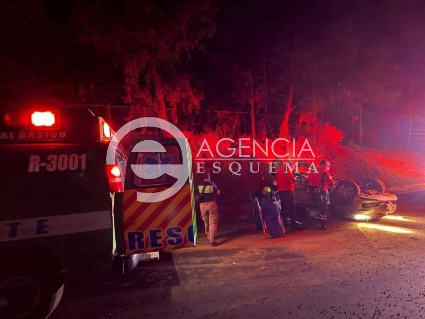 Uruapan, Michoacán, 11 de marzo de 2026.- La noche de este martes se registró la volcadura de un vehículo compacto contra saldo de una mujer embarazada lesionada, sobre la carretera Uruapan-Paracho, a la altura de la desviación a Tiamba.