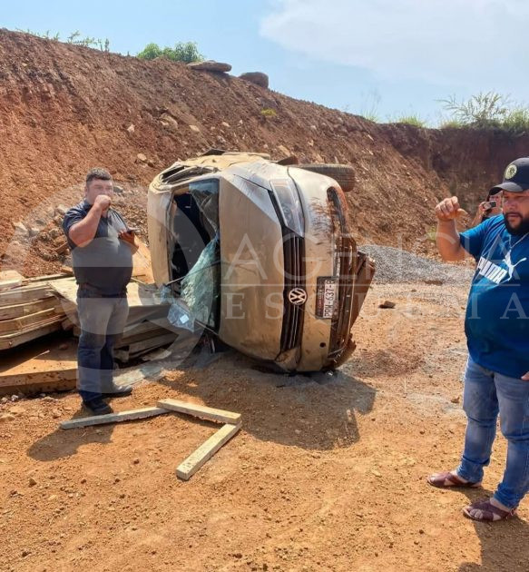 Cuatro kilómetros más adelante, en el kilómetro 100+800, un automóvil, compacto, de color gris, se volcó aparatosamente y quedó sobre su costado izquierdo junto a un montón de tierra, lugar donde dos personas quedaron heridas.