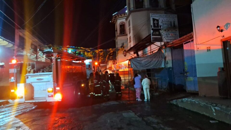 Uruapan, Michoacán, 10 de enero de 2026.- La madrugada de este sábado se registró un voraz incendio en una florería, a un costado del templo de la Sagrada Familia y a unos metros del Panteón Municipal, en la colonia Progreso.