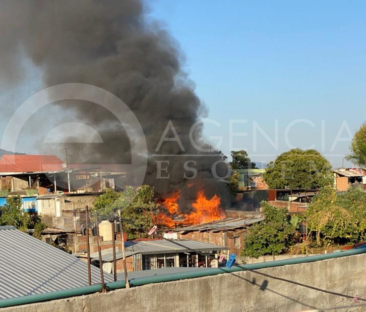 Uruapan, Michoacán, 30 de diciembre de 2024.– Un voraz incendio consumió una casa construida de madera y lámina de cartón, la tarde de este lunes, en la colonia Casa del Niño.