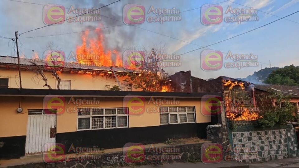 Uruapan, Michoacán, 25 de abril de 2024.- Un voraz incendio consumió una vivienda la mañana de este jueves en la colonia Constitución, mejor conocida como La Charanda.